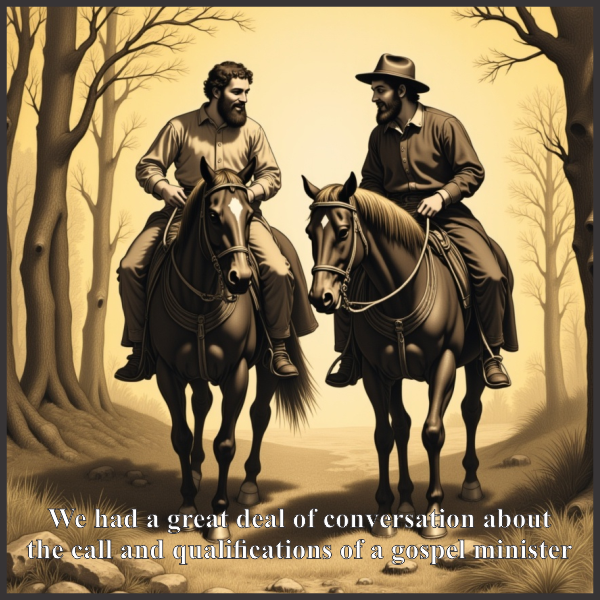 I enquired of him whether he would be willing to undertake a mission. He said he intended to itinerant in Louisiana the ensuing winter, or sometime shortly, but would do it at his own expense, that the funds of the General Assembly might be expended on more useful and worthy men. He gave me a brief history of the Cumberland Presbytery from which history I learned that the vacancies are chiefly filled up with illiterate exhorter and licentiates who are chiefly Arminians in sentiment and who ride in circuits after the manner of the Methodists.