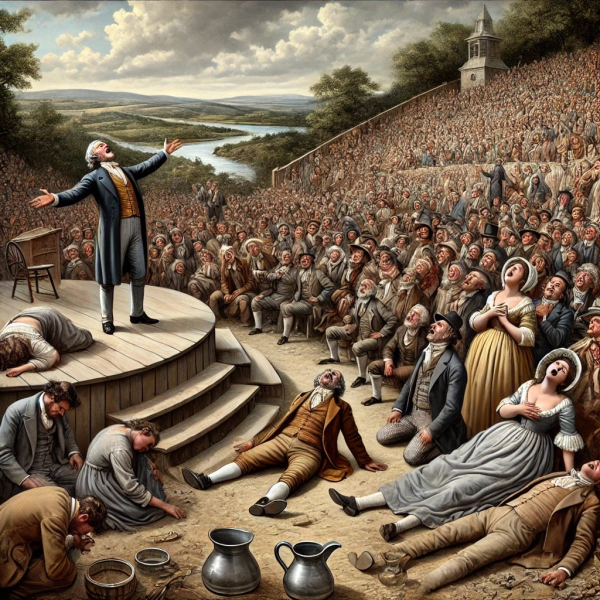 Fervor and Convulsions During these gatherings, people were seized by the Holy Spirit, often in dramatic and physical ways. Accounts describe how individuals would fall to the ground in convulsive fits, crying out in fear of eternal damnation. Many fainted or swooned from the intensity of the sermons, while others wept openly in terror of their sins. George Whitefield's preaching, which emphasized the doctrines of free grace and the need for personal regeneration and the indwelling of the Holy Spirit, struck a deep chord with these people. For many, the public displays of emotion were seen as proof of genuine spiritual transformation. Pitchers of water were kept nearby to revive those who had fainted, and a row of "patients" could often be seen seated at the front of the assembly, their heads bound with cloths as they recovered from their physical reactions to the intensity of the sermons. The spectacle was both awe-inspiring and frightening, drawing increasing attention from far and wide “The number of people that were there on Saturday and Monday was very considerable: but the number present, at the three tents, on the Lord’s day, was so great, that, so far as I can hear, none ever saw the like since the Revolution in Scotland; nor even anywhere else, at any sacrament occasion: some have called them fifty thousand —some forty thousand. The lowest estimate I heard of, with which Mr. Whitefield agrees, who has been much used to great multitudes, makes them to have been upwards of thirty thousand. “The number of communicants (those who partook of the Lord's Supper) appears to have been about three thousand. The tables were doubled, and the double table was reckoned to contain one hundred and fourteen, one hundred and sixteen, or one hundred and twenty communicants. The number of tables I reckoned had been about twenty-four, but I have been since informed, that a man who sat near the tables, and kept a pen in his hand, and carefully marked each service, said that there were twenty-five double tables, the last wanting only five or six sitters to fill it up". Physical phenomena As to what these young men termed “the falling,” it was a way of speaking among scoffers at the time, occasioned by the bodily distress which, in many instances, accompanied conviction. The work was much objected to in consequence; but when the intimate connection of soul and body is considered, it will not appear surprising that great outward agitation should mark the emotions of a soul fully awakened to the dread realities of judgment and eternity. The loss of a dear relative, and many of the other painful vicissitudes of life, when suddenly forced upon the mind, affect the bodily constitution so powerfully as, in some instances, to occasion even death. And if such is sometimes the effect of things merely temporal, need we wonder that a vivid sense of the sinner’s situation out of Christ, with nothing but the brittle thread of life between him and everlasting destruction, should overpower the body! Note: The consistent theme of ministers familiar with the movement of the Holy Spirit is not that "strange appearances" happen...the flesh will naturally react when the Holy Spirit convicts of sin ... wise ministers try to control the effects of the Holy Spirit, not the Holy Spirit Himself. He works with The Holy Spirit, not against Him. The wise minister recognizes that in order for the Holy Spirit to accomplish His deep, immediate conviction in sinners and saints, the flesh reactions must be kept to a minimum, lest they distract from the spiritual work. See how Charles Finney dealt with these distracations while respecting the movement of the Holy Spirit. The wonder rather is, that the preaching of the solemn truths of God’s Word is so rarely followed by such consequences; and we can account for this only by supposing, that the Spirit of God does not make the sinner at once alive to all the terrors of his condition. |